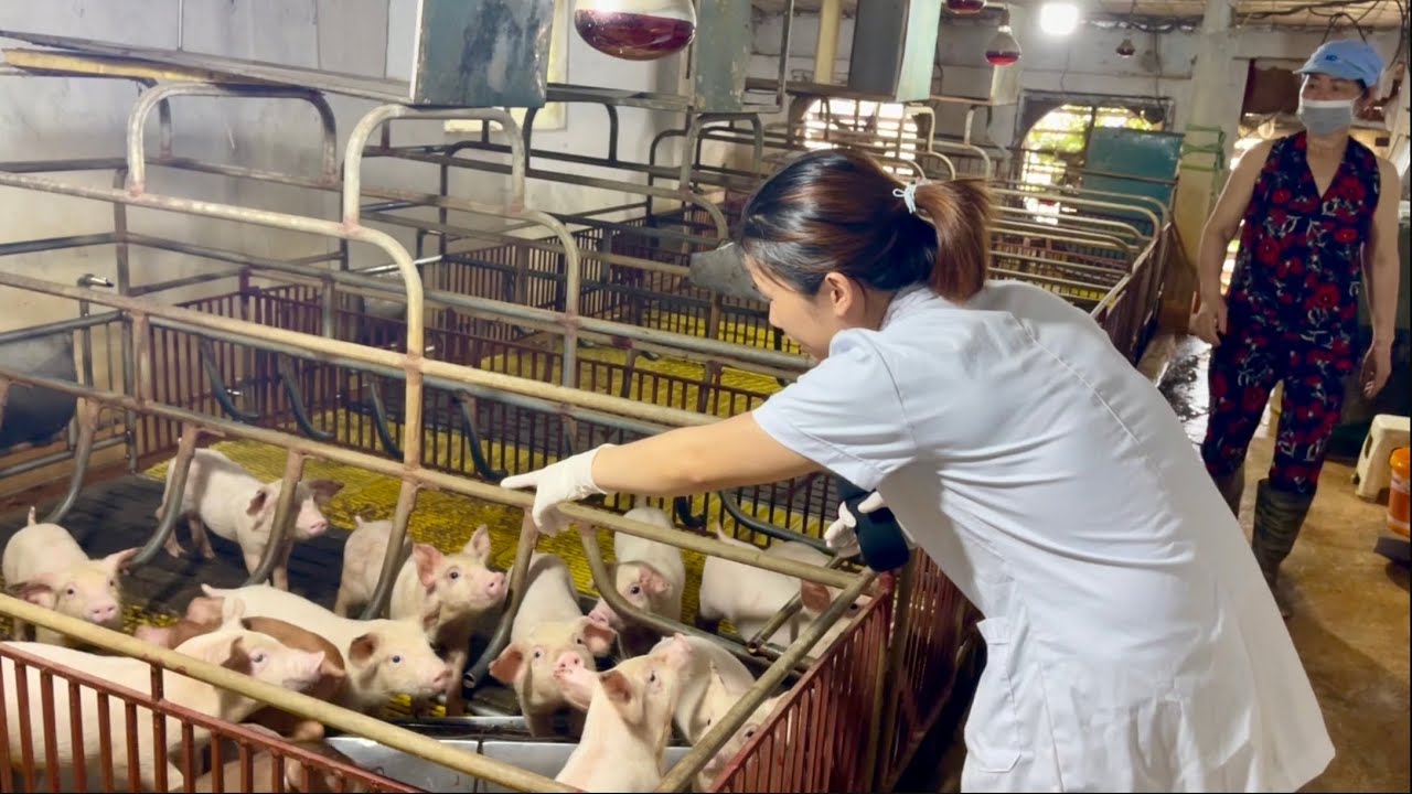 Heo nái sau sinh 3 tuần: Tiêm vắc xin lở mồm long móng