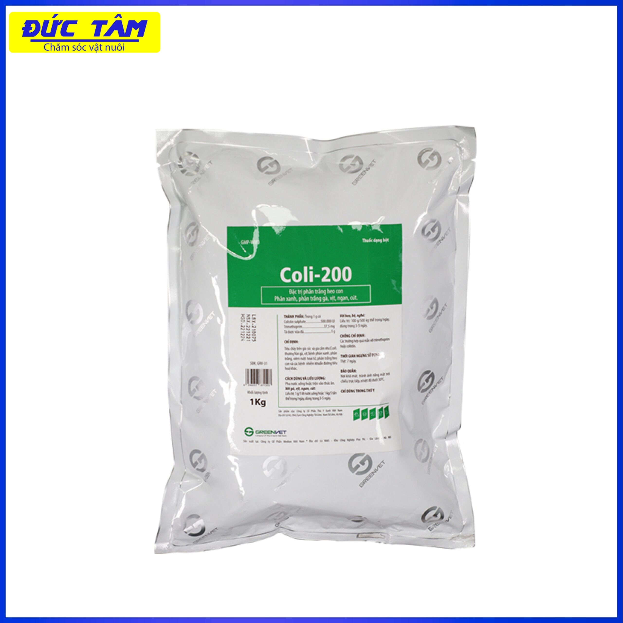 Coli-200 được phối chế đặc biệt cho điều trị các bệnh tiêu chảy trên gia súc, gia cầm như E.coli, thương hàn gà, vịt, bệnh phân xanh, phân trắng, viêm ruột hoại tử, phân trắng heo con và các bệnh nhiễm khuẩn đường tiêu hóa khác.