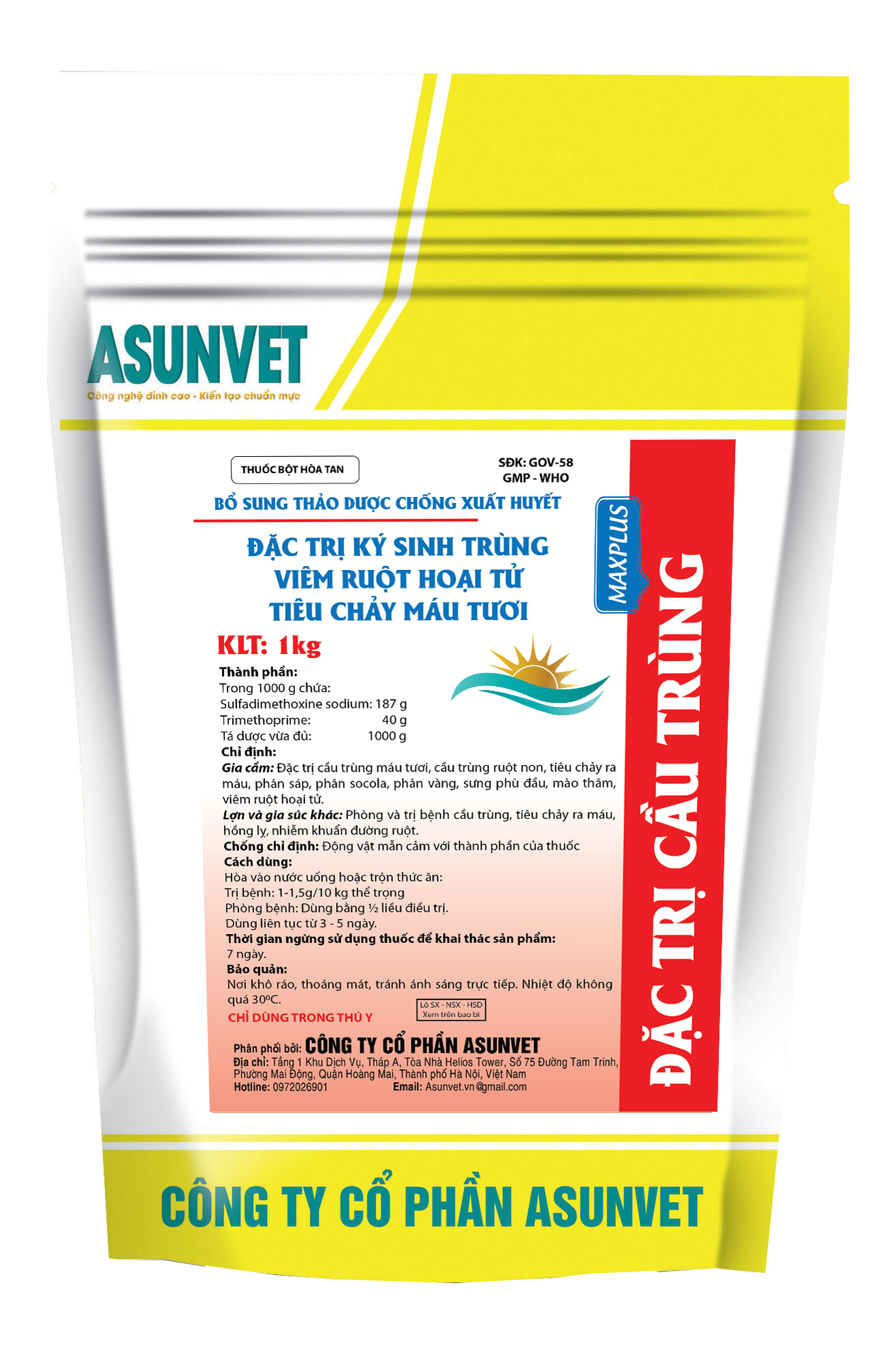 Gia cầm: Đặc trị cầu trùng máu tươi, cầu trùng ruột non, tiêu chảy ra máu, phân sáp, phân socola, phân vàng, sưng phù đầu, mào thâm, viêm ruột hoại tử.