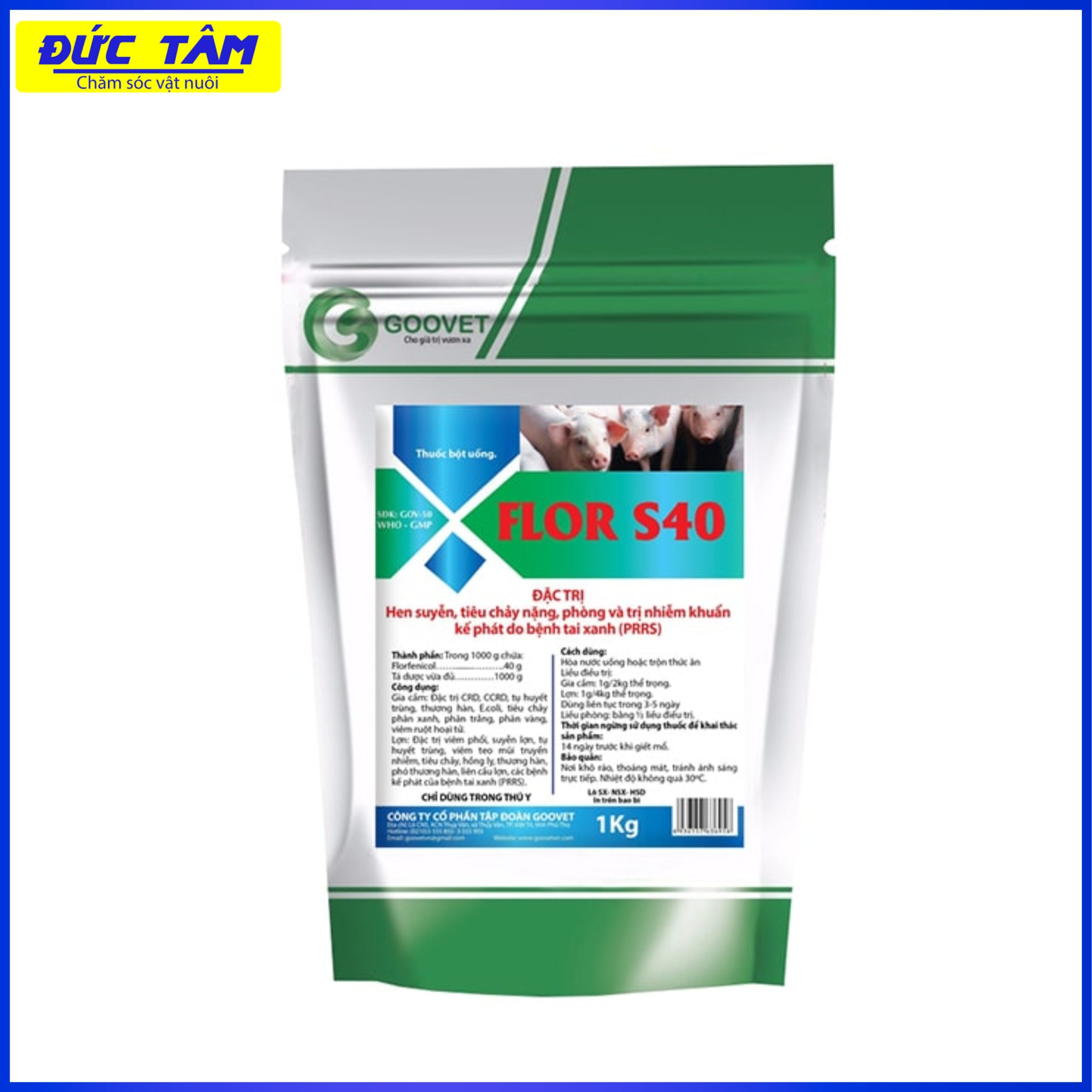 Lợn: Đặc trị viêm phổi, suyễn lợn, tụ huyết trùng, viêm teo mũi truyền  nhiễm,  tiêu chảy, hồng lỵ, thương hàn, phó thương hàn, liên cầu lợn, các bệnh kế phát của bệnh tai xanh (PRRS).