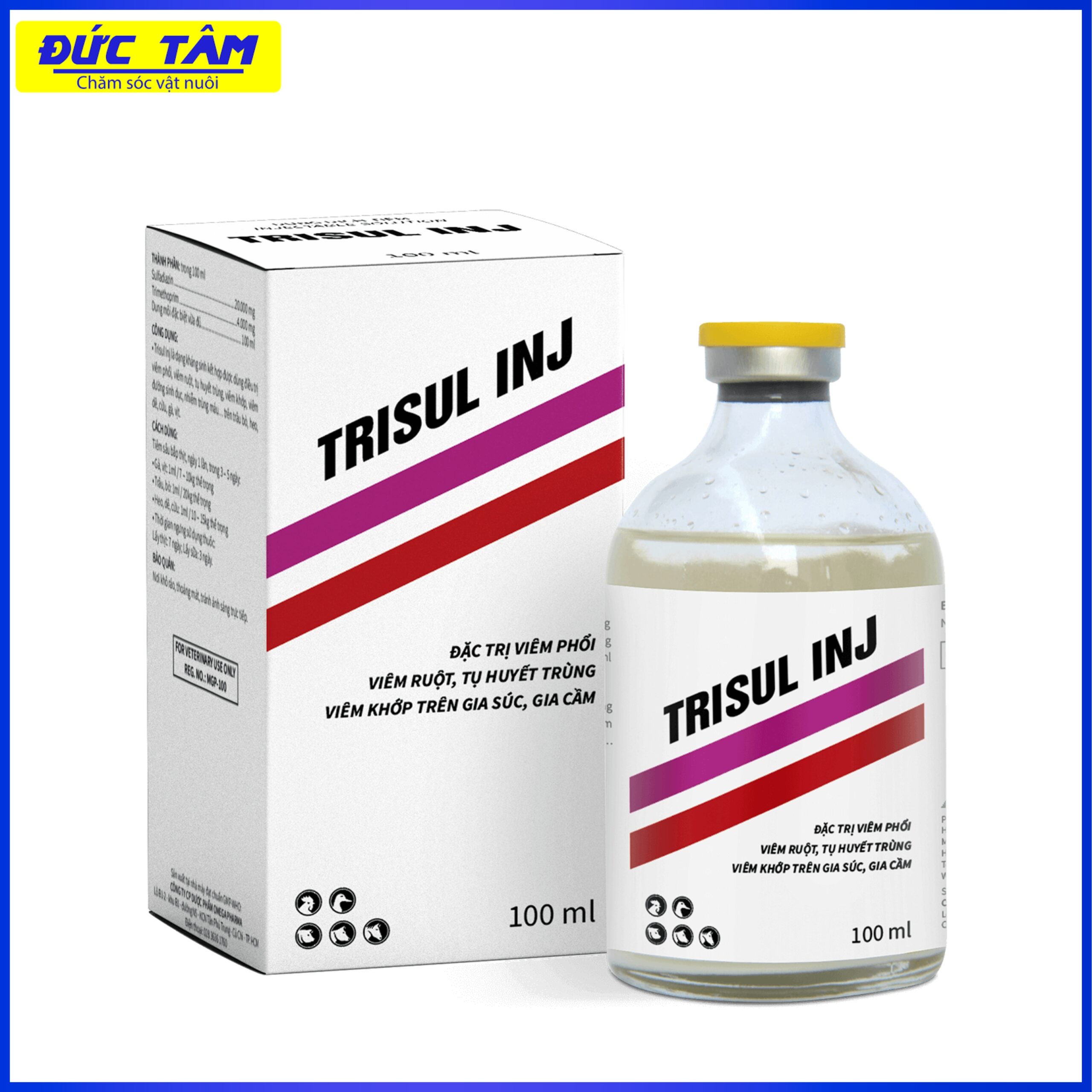 Trisul Inj là dạng kháng sinh kết hợp được dùng điều trị viêm phổi, viêm ruột, tụ huyết trùng, viêm khớp, viêm đường sinh dục, nhiễm trùng máu… Trên trâu bò, heo, dê, cừu, gà, vịt.