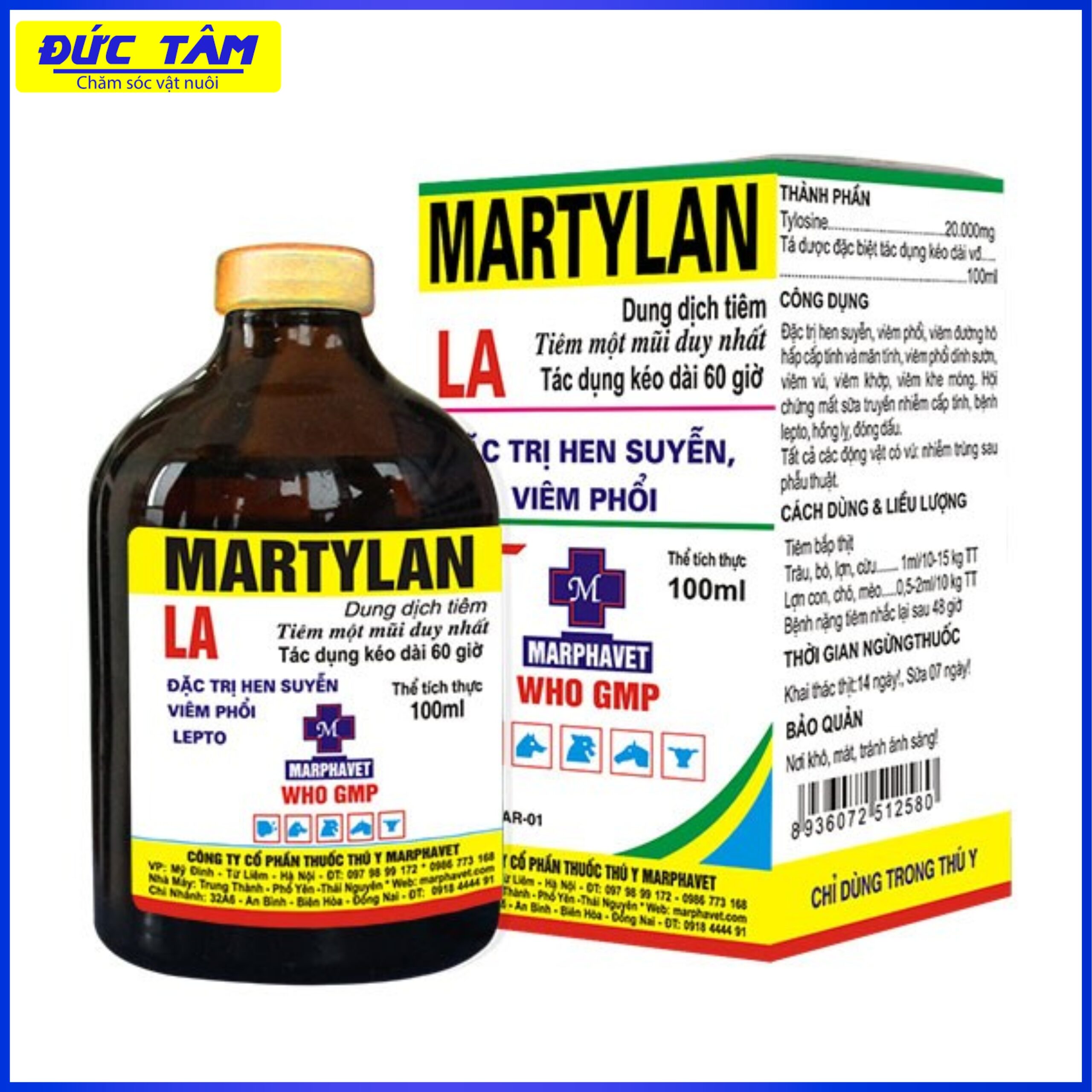 Đặc trị hen suyễn, viêm phổi, viêm đường hô hấp cấp tính và màn tính, vĩêm phổi dính sườn, viêm vú, viêm khớp, viêm khe mông. Hội chúng mất sữa truyền nhiễm cấp tính, bệnh lepto, hồng lỵ. đóng dấu.